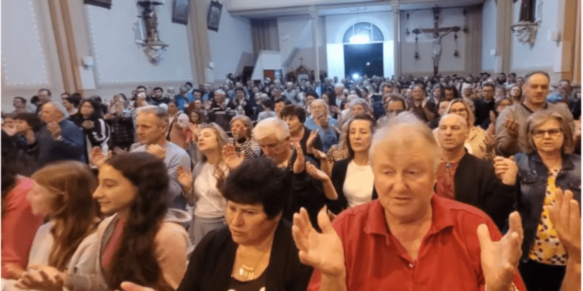 A igreja estava completamente cheia, testemunhando a fervorosa devoção de uma comunidade viva em Nova Milano, localidade que é o berço da Imigração Italiana no estado do Rio Grande do Sul.