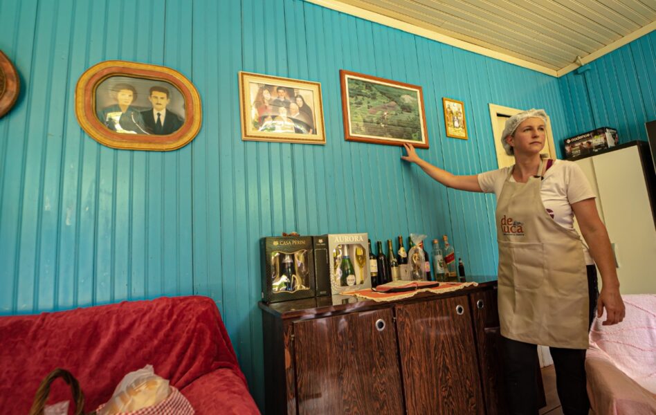 Sérgio De Luca nasceu na mesma propriedade onde vive até hoje. Ele conta que quando era criança, na casa onde morava, havia embaixo uma estrebaria, abrigo dos animais. Com seus cinco irmãos, a família trabalhava no corte de pinheiro e plantação de parreira, batata, trigo, aveia e milho. Hoje ele cultiva um hectare de uva que rende cerca de 10 mil toneladas por ano.