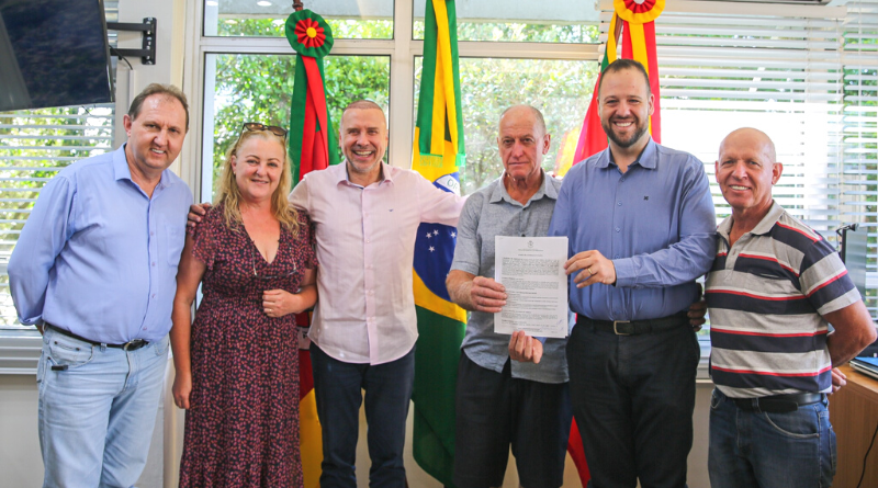 Na tarde de sexta-feira, 27, o presidente da Associações de Moradores da Comunidade de Santa Cruz, Natalino Tonini, e o prefeito de Farroupilha, Fabiano Feltrin, assinaram termo de cooperação para execução de asfalto em uma estrada da localidade.