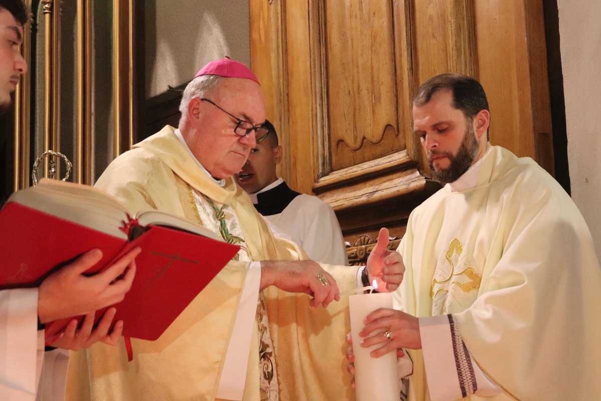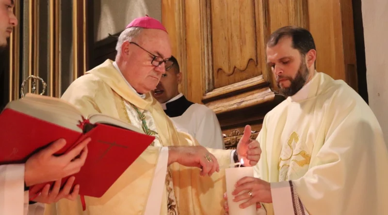 Dom José Gislon preside a Vigília Pascal na Catedral de Caxias, com a bênção do fogo e da água