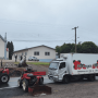 Bloqueio em frente a Igreja da comunidade São José, Linha Palmeiro, entre Caxias do Sul e o Santuário de Caravaggio, em Farroupilha, com bloqueio total em ambos os sentidos.
