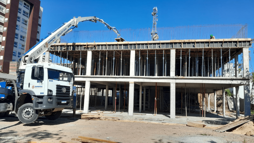 Conforme o setor de fiscalização do Poder Público, a empresa responsável está finalizando a execução das vigas e lajes da cobertura no prédio. As próximas etapas serão a execução da estrutura e cobertura do pavimento que abrigará os reservatórios de água, assim como serão iniciados os trabalhos de assentamento de alvenaria e das instalações prediais, sistemas hidráulicos, sanitário, elétricos e rede.