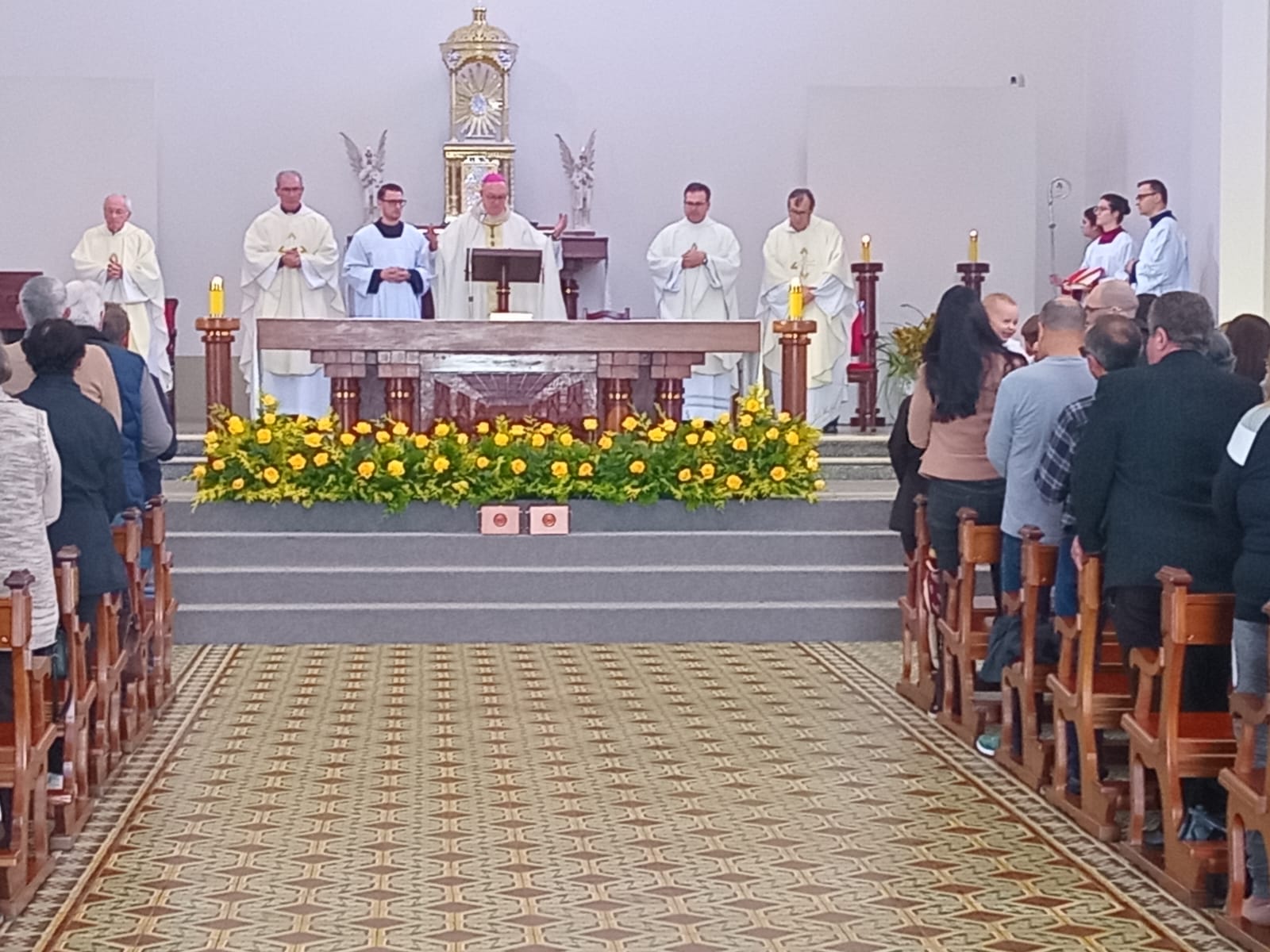 Com elementos em mármore de Carrara e Siena (Itália), confere ainda mais beleza, solenidade e reverência à celebração da Eucaristia
